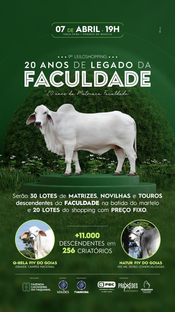 SERÃO 30 LOTES DE MATRIZES, NOVILHAS E TOUROS DESCENDENTES DA FACULDADE NA BATIDA DO MARTELO, E 20 LOTES DO SHOPING COM PREÇO FIXO.