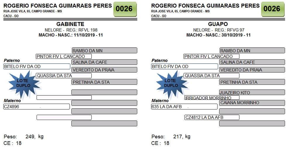 Lote 026 - 02 BEZERROS PC PINTADO DE PRETO - RGN: RFVG 97/RFVL 198 - FAZ.VARJÃO GRANDE