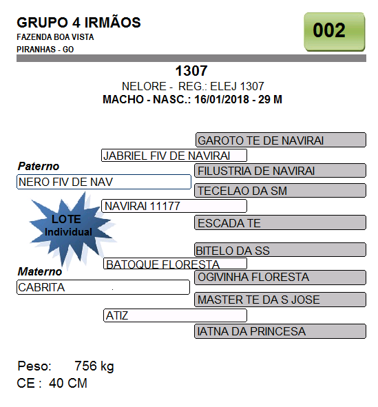 Lote 002 - TOURO NELORE PO - RGN: ELEJ 1307 - GRUPO 4 IRMÃOS