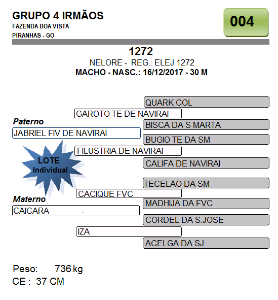 Lote 004 - TOURO NELORE PO - RGN: ELEJ 1272 - GRUPO 4 IRMÃOS