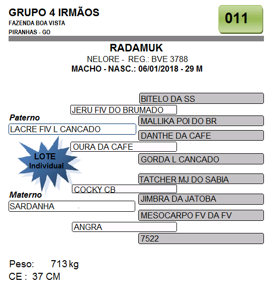 Lote 011 - TOURO NELORE PO - RGN: BVE 3788 - GRUPO 4 IRMÃOS