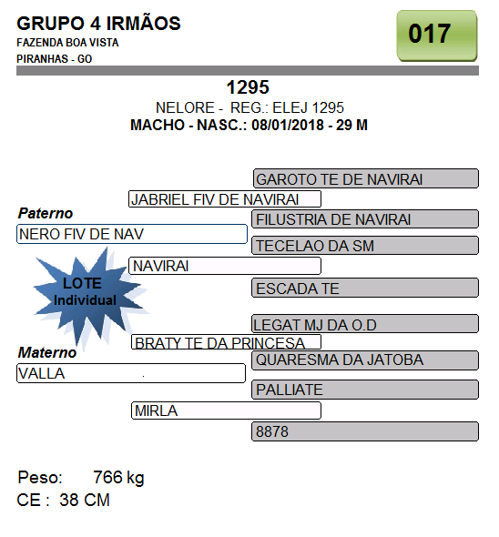 Lote 017 - TOURO NELORE PO - RGN: ELEJ 1295 - GRUPO 4 IRMÃOS