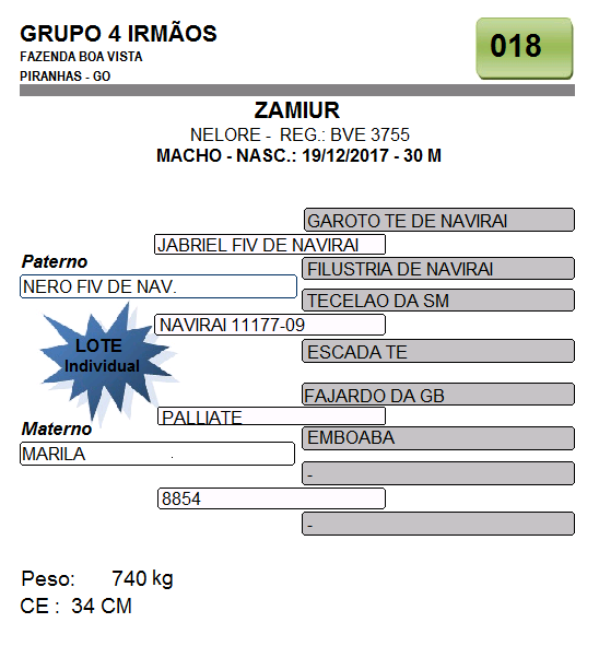 Lote 018 - TOURO NELORE PO - RGN: BVE 3755 - GRUPO 4 IRMÃOS