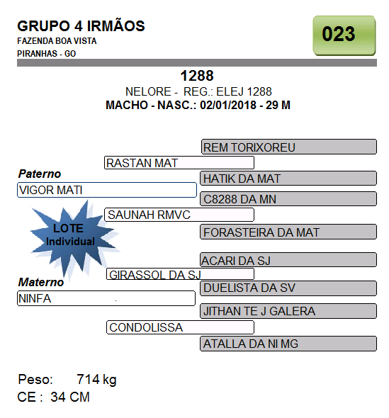 Lote 023 - TOURO NELORE PO - RGN: ELEJ 1288 - GRUPO 4 IRMÃOS