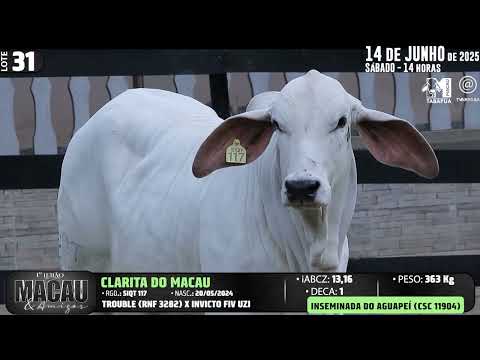 CLARITA DO MACAU - RG: SIQT 117 NASCIMENTO: 20/05/2024 PESO: 363 KG DECA: 1 iABCZ: 13,16 INSEMINADA DO TOURO AGUAPEÍ DO CÓRREGO BEZERRO: DECA:1 iABCZ: 16,69
