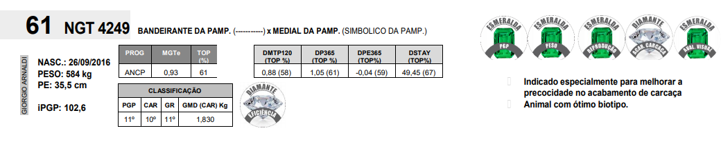 Lote 61 - NGT 4249 VENDA DE 50% DO ANIMAL